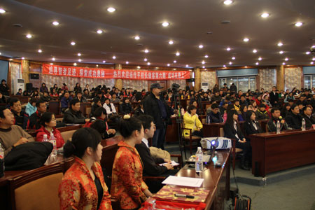 12月23日18:00,由研究生部团委组织策划的访谈活动第六期《成功在路上》在动资楼国际会议厅顺利举行。我国林木遗传育种专家、博士生导师、东北林业大学校长杨传平教授做客《成功在路上》,为同学们讲述了他从一名林场知青到大学知名教授的成长历程。访谈过程中,杨校长为同学们现场朗诵文章并演唱歌曲,展现了一名学者的多才多艺。访谈现场座无虚席,很多同学席地而坐,气氛热烈,掌声频频。