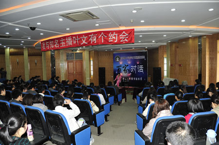 整场对话中,叶文女士用真诚的态度、幽默的谈吐打动了在场的每一位同学。她向同学们展示了一位优秀主持人的另一面,也让同学们体会到了节目直播现场的感觉,叶文女士用亲身经历给予了同学们成长道路上的很多建议与意见。活动在同学们的热烈持久的掌声中圆满结束。(李秋玲)