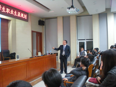 在幽默风趣的氛围中,岳经理首先介绍了当今通信行业的状况和前景,并就通信行业及专业知识与同学们现场互动;接着,就当下同学们最关注的就业问题以及企业所需人才方向作了详细介绍,并以自身就业成长经历与大家共同分享了成功的专业素养,并强调了专业知识的重要性;最后,还给同学们介绍了应聘细节,从一位专业的企业领导角度为大学生就业遇到的问题作了分析,真正诠释了“细节决定成败”。