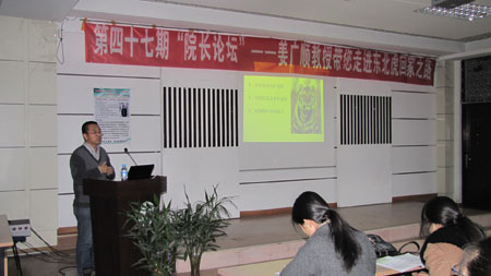 2011年11月24日,由我校研究生院团委组织策划的“709院长论坛”第四十七期——“你我共牵手,点亮东北虎回家之路”主题讲座在研究生楼709顺利举行。世界自然基金会(WWF)虎豹保护项目高级官员、东北林业大学国际猫科动物研究中心副主任、东北林业大学野生动物资源学院姜广顺教授为同学们带来了题为“你我共牵手,点亮东北虎回家之路”的精彩讲座,并在现场和同学们进行了广泛而热烈的交流。