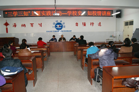 本次校史讲座是工程技术学院开展的“三学三知”——学校史、知校情主题实践活动之一。通过本次讲座,工程技术学院全体教职员工不仅调动了工作积极性,增强了责任感、使命感和荣誉感,同时还为明年60周年校庆工作的大力开展鼓舞了热情,激发了动力。(崔剑)