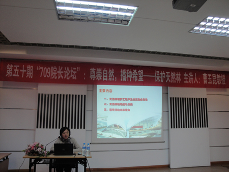 2012年4月11日,我校第五十期“709院长论坛”主题讲座在嘉宾与同学的热烈交流中圆满结束。黑龙江省中青年优秀专家、龙江学者特聘教授、东北林业大学经济管理学院副院长、博士生导师曹玉昆教授为同学们带来了以“天保”工程产生的历史必然及作用分析为主题的精彩讲座。