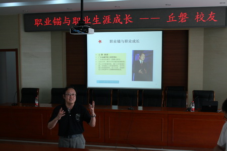丘磐校友从职业锚讲起,结合他自身的成长经历,以交流互动的方式做了精彩的演讲,给新老校友们上了生动的一课。丘磐校友博览古今,引经据典,妙语连珠,赢得了大家的阵阵掌声。参加讲座的学生们一致认为丘老师的讲座对他们开启职业之门、走向成功之路大有裨益。(雁翎)
