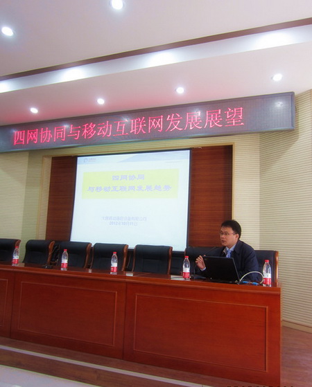 大唐移动是一家从事TD—SCDMA/LTE等移动通信设备开发、生产、销售和服务的国资委所属的知名通信企业,在通信专业技术培养上积累了大量的经验。根据校企合作共同培养移动通信人才的安排,“四网协同与移动互联网发展展望”的学术报告会于2012年10月11日在我校如期举行。