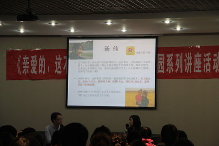10月31日晚6点,由研究生院团委主办的第二十七期“Journal Club”在我校研究生楼006室顺利举行。与喜欢旅游的同学共同交流分享,《亲爱的,这不只是一场旅行》的作者汤佳为大家讲述了她和老公的旅游趣事。