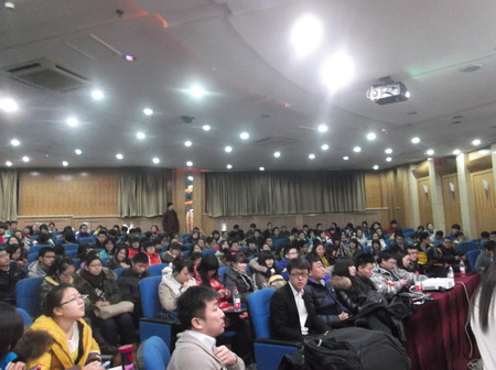 讲座一开始,小宝老师用幽默语言调侃学校食堂厨师能把不同的菜做出同一种味道,道出了同学的心声,也拉近了彼此的距离。接下来,老师结合自己的留学经验,用简洁的三个单词总结出出国路上的三种人:Abandan,abnormal,abide,提醒大家不仅要了解出国,更要理性对待出国。随之介绍了留学申请细则、途径以及GRE、托福考试等情况。最后老师根据自己多年的高管经历建议大家今后要做朴素、踏实的人,在递交求职简历时也不要过于花俏。最后小宝老师和同学们分享了他的生活态度:“勤奋、方法、坚持、乐观、坚强、拥有一颗不安分的心”及“勇于用你恶心的口语去恶心别人”“Stay Foolish,Stay Hungry”。精辟言论,风趣的谈吐,博得一阵又一阵热烈的掌声。一曲《壮志在我胸》结束了他本次妙语连珠的讲座。