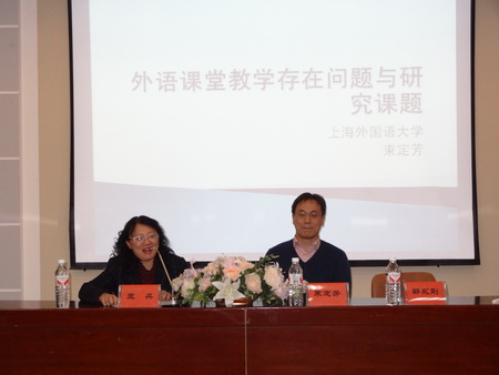束教授首先介绍了当今外语教学中所存在的种种问题,继而提出了解决这些问题的方法,最后,束教授针对目前外语教学理论研究不足这一现象,向老师们建设性地提出了在教学的哪些方面可以进行立项研究的建议。在报告结束后,束教授与教师们进行了亲切的交流,回答了教师们所提出的问题。报告会在教师们热烈的掌声中结束。