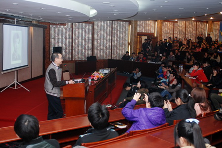 2013年4月18日16时,前国防部资深口译员杨军老师在东北林业大学国际会议厅为同学们带来了一场关于“翻译学习与人生际遇”的精彩讲座。本次讲座由外国语学院院长王丹教授主持,英语系主任赵莉教授组织并出席了本次讲座。