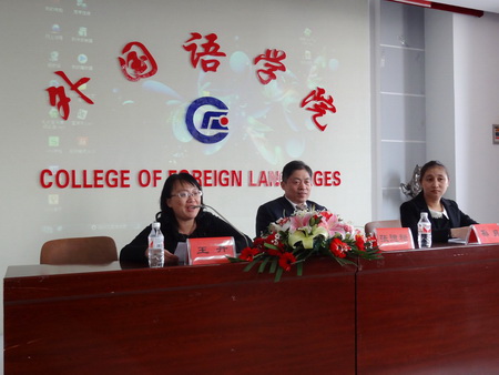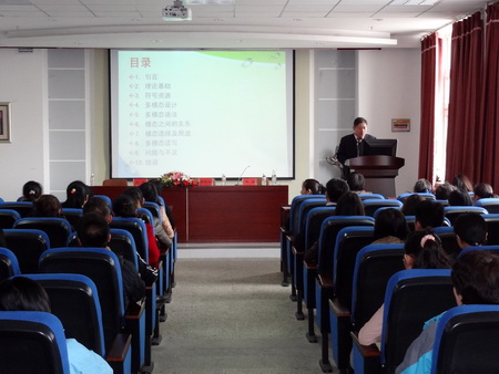 2013年4月26日15点30分,应外国语学院院长王丹教授的邀请,同济大学外国语学院博士生导师张德禄教授在文博楼1019室报告厅为我院师生作了一场题为“多模态话语分析理论与实践”的学术报告。此次报告由外国语学院孙爽副院长主持。英语系、大学外语教学部全体教师及部分硕士生参加了此次报告会。外国语学院院长王丹教授代表外国语学院对张德禄教授的莅临指导表示了热烈的欢迎和感谢。