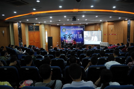 智慧引领生活,读书改变人生。5月10日晚18:00时,图书馆第27期百家对话暨世界读书日主题系列活动之“与大师马院士对话”在图书馆学术报告厅如期举行。活动由图书馆业务推广部兰孝慈主持,图书馆领导、部主任、馆员和学生们参加了本次活动。