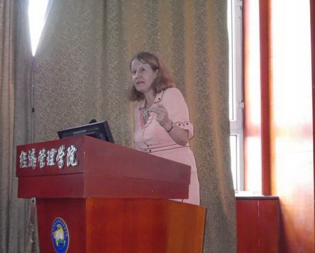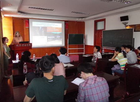2013年6月15日下午,经济管理学院国际经济与贸易学科邀请了世界著名大学—莫斯科大学尤金娜教授在经济管理学院学术报告厅作了题为“俄罗斯和中国:经济稳步发展战略及其因素” (“Россия и Китай: стратегия и факторы « устойчивого развития»”)的学术讲座。经济管理学院副院长曹玉昆教授及经济管理学院有关领导、老师、研究生和本科生参加了本次学术讲座。学术报告会由经济管理学院副院长曹玉昆教授主持,并介绍了尤金娜教授近年来所取得的学术成就。