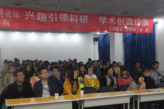 用经验启迪人生,用故事诠释青春;寻访优秀学子,感悟东林精神。2015年4月20日晚,由东北林业大学研究生会主办的第四期“东林硕博论坛”在研究生楼006成功举办。本期两位特邀嘉宾曹巍瀚、高磊同学围绕“兴趣引领科研 学术创造价值”与同学们分享了他们在科研学习上的奋斗过程以及就业应聘经验,来自不同专业的百余名研究生、本科生参加了此次学术交流活动。