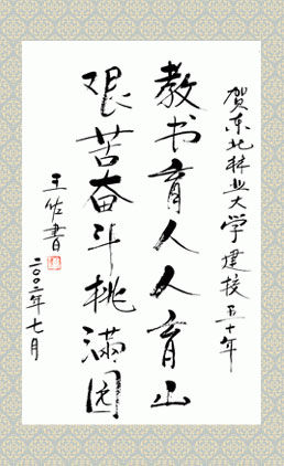 黑龙江省副省长王佐书为学校题词